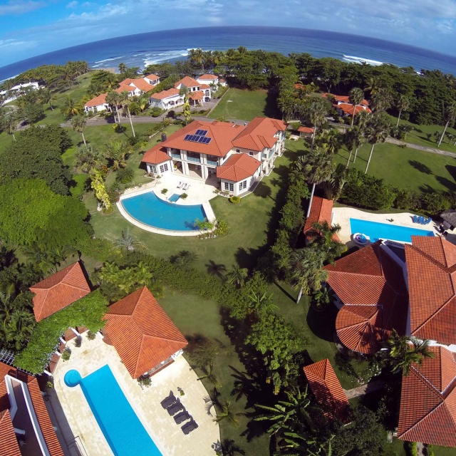 This beach villa compound includes 4 villas, totaling 19 bedrooms.