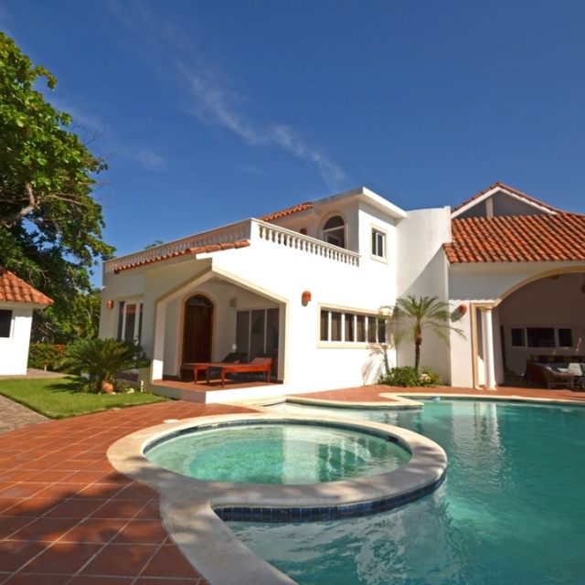 The third one is #1113: a 4 bedroom luxury villa built by Europeans in a neoclassic style, offering ample air conditioned suites with ensuite bathrooms, three on the second floor and one in the first. The pool in this villa is the one we use for Aqua Yoga and Aquaerobics, shallow and spacious. The villa includes a media room, library room and ample garden areas.