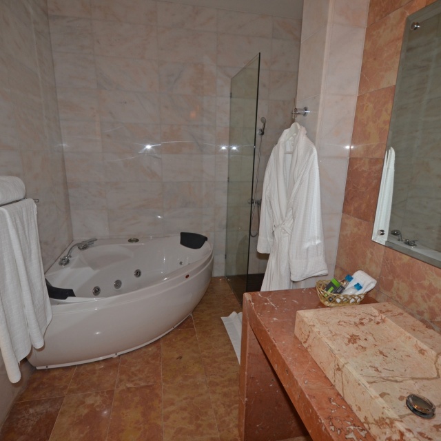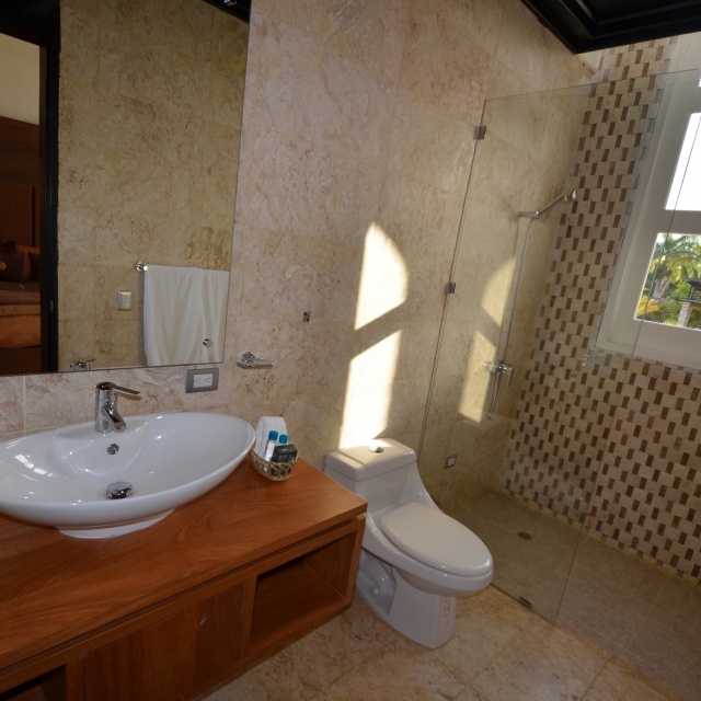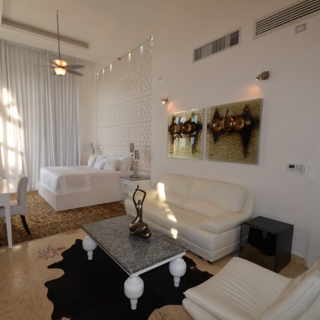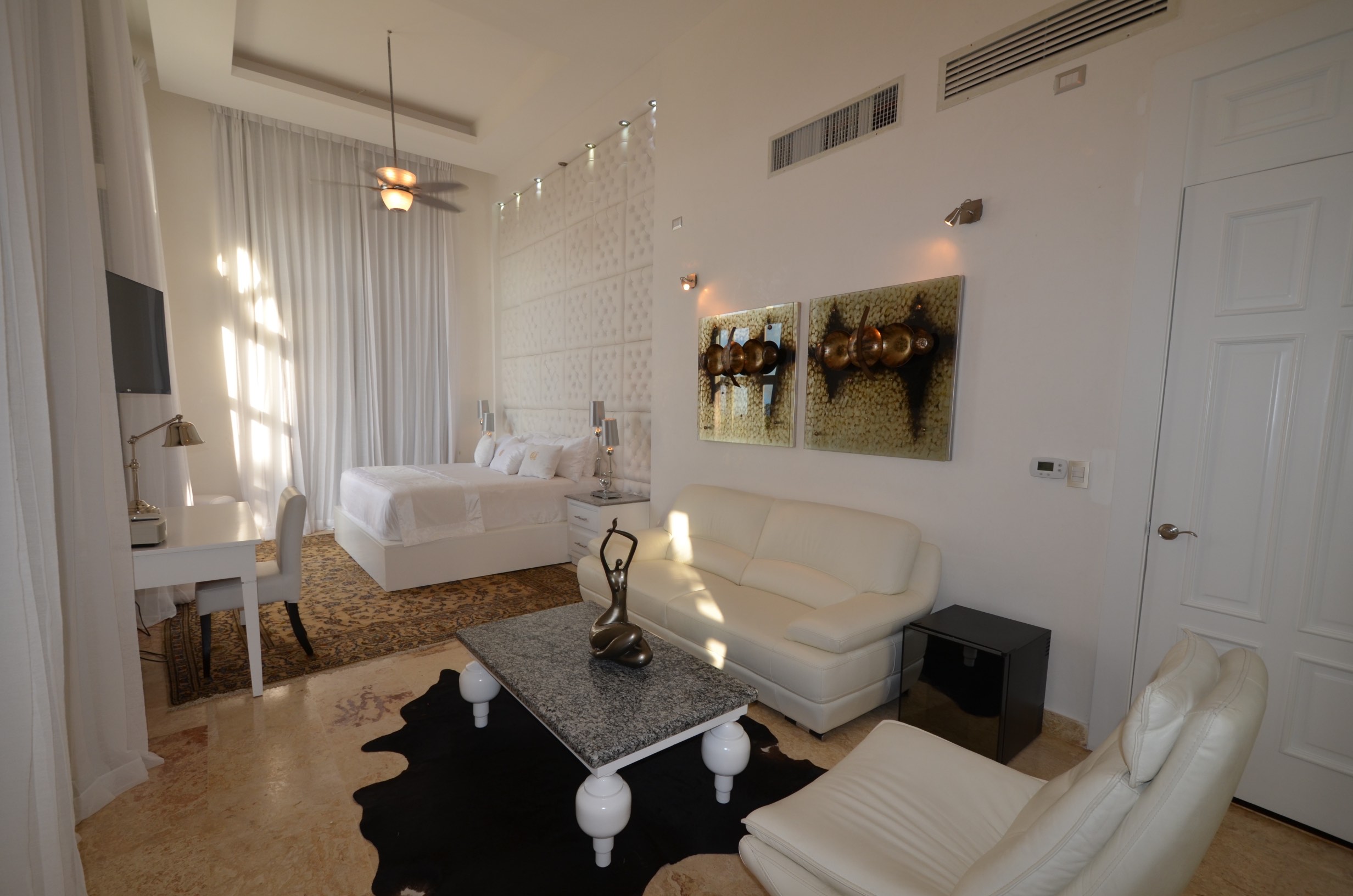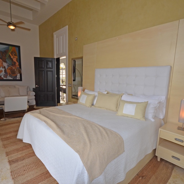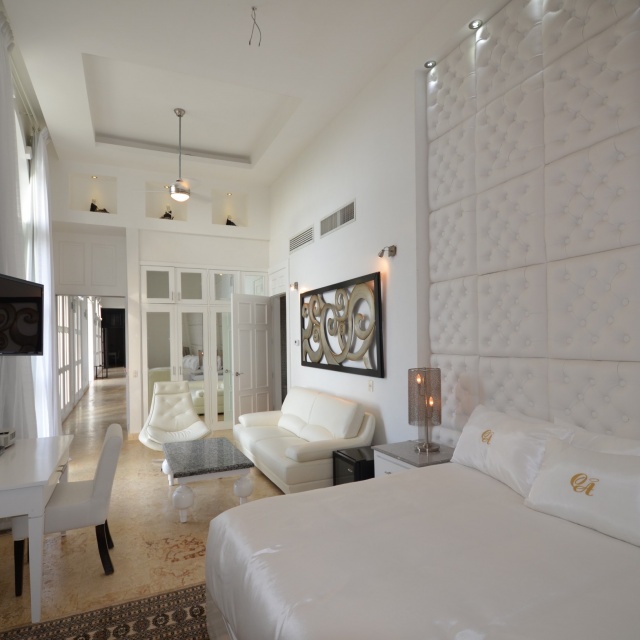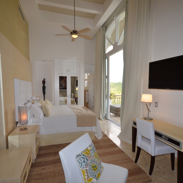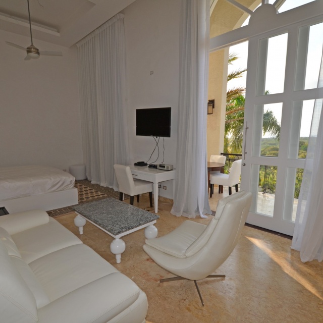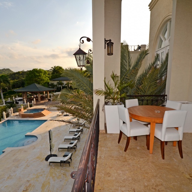 The suites are very well appointed, with king size beds, TV, A/C, customized design with paneled walls and balconies with gorgeous natural vistas. The villa has royal palms and extensive manicured garden areas.